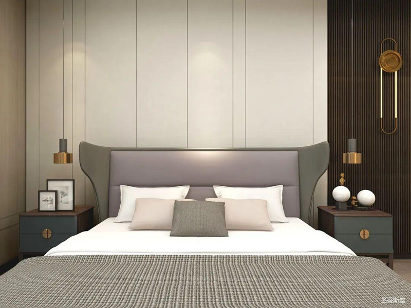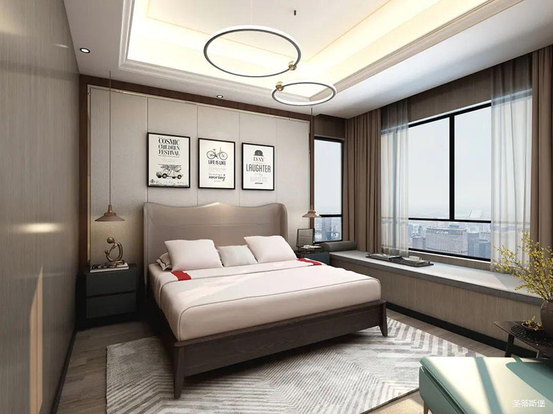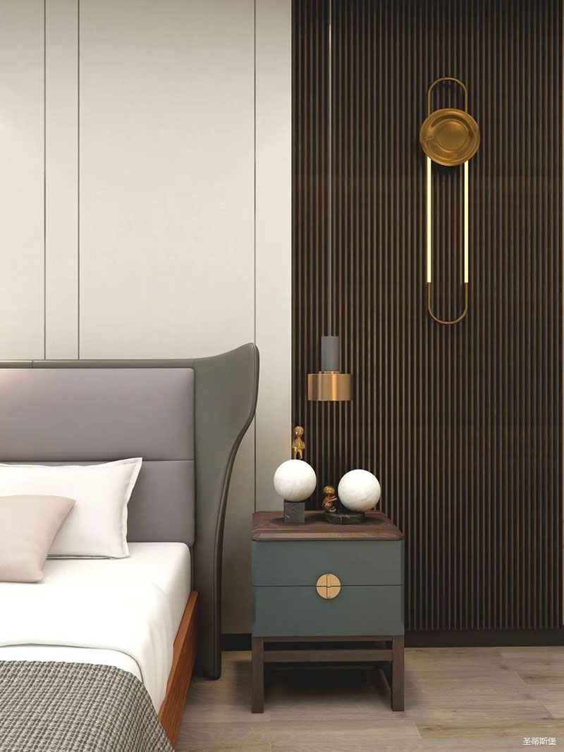臥室精簡有致,從質(zhì)感出發(fā),打造由內(nèi)而外的優(yōu)雅奢華感。背景墻、地板、地毯均擁有較強(qiáng)的肌理感,在加上金屬軟裝飾物調(diào)和,讓空間在低調(diào)內(nèi)斂的基礎(chǔ)上又不失時尚的高級感,飄窗進(jìn)階為溫馨的一角,閑暇時,則可倚窗而坐,品一杯紅酒,感受生活中的愜意時光。