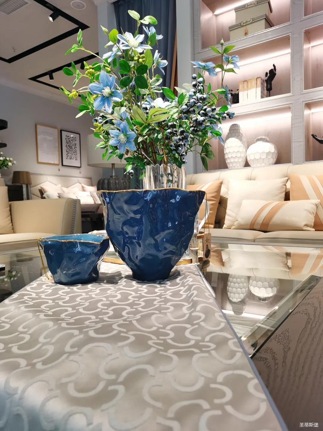 中國傳統(tǒng)陶瓷藝術,尤見裝飾匠心。表面凹凸,深淺海藍交錯,倒映出海面迎風起波的場景,深邃沉靜。