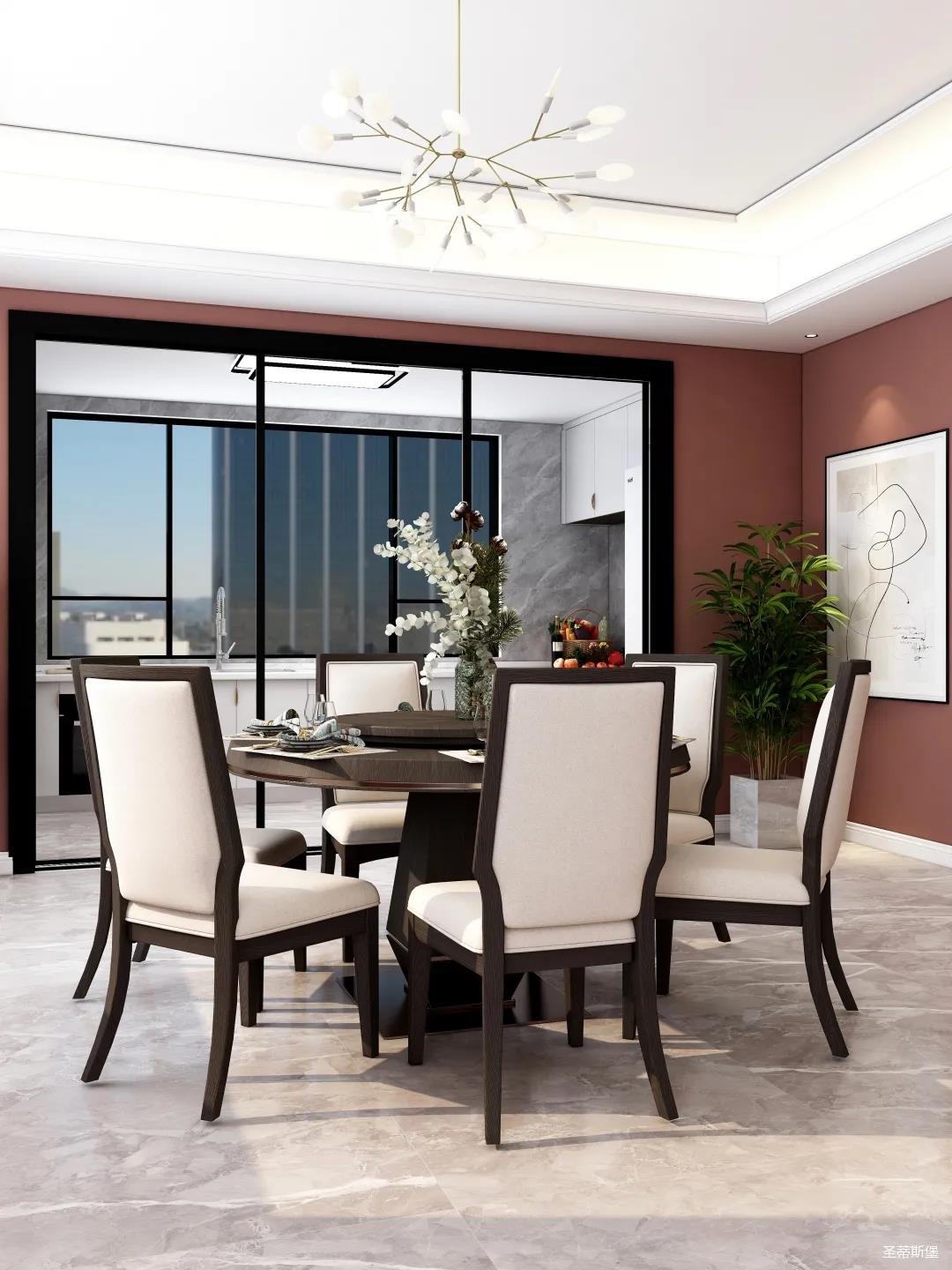 餐廳表姐更喜歡干凈素雅的氛圍,認為圓形餐桌不僅遵循傳統(tǒng)用餐,也寓意團團圓圓,讓圍桌吃飯的氛圍更溫馨。因此餐廳以黑白灰為基底,用圓形餐桌布局餐廳,在有限的空間內(nèi),同時也注重功能性。