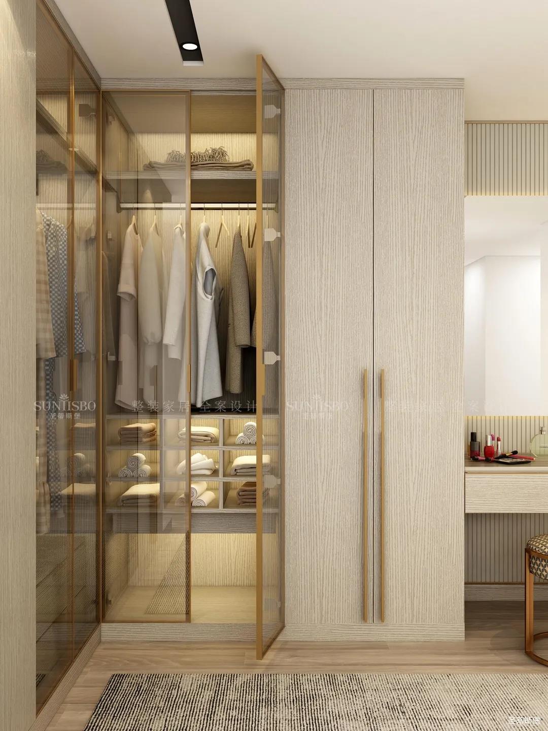 玻璃增加了衣柜的通透性,視覺(jué)上更為干凈整潔。