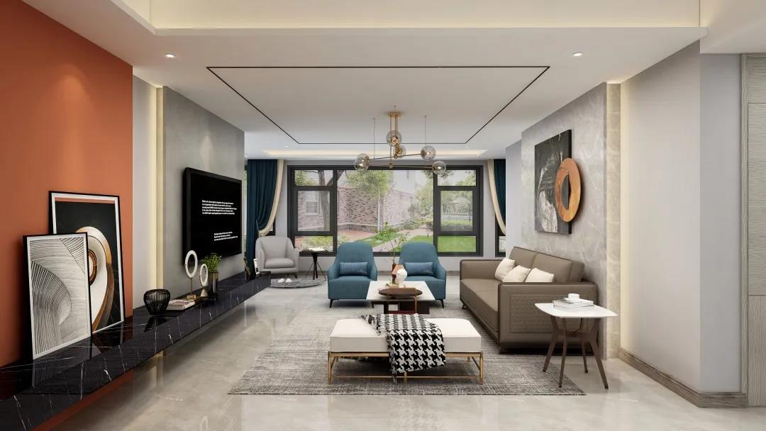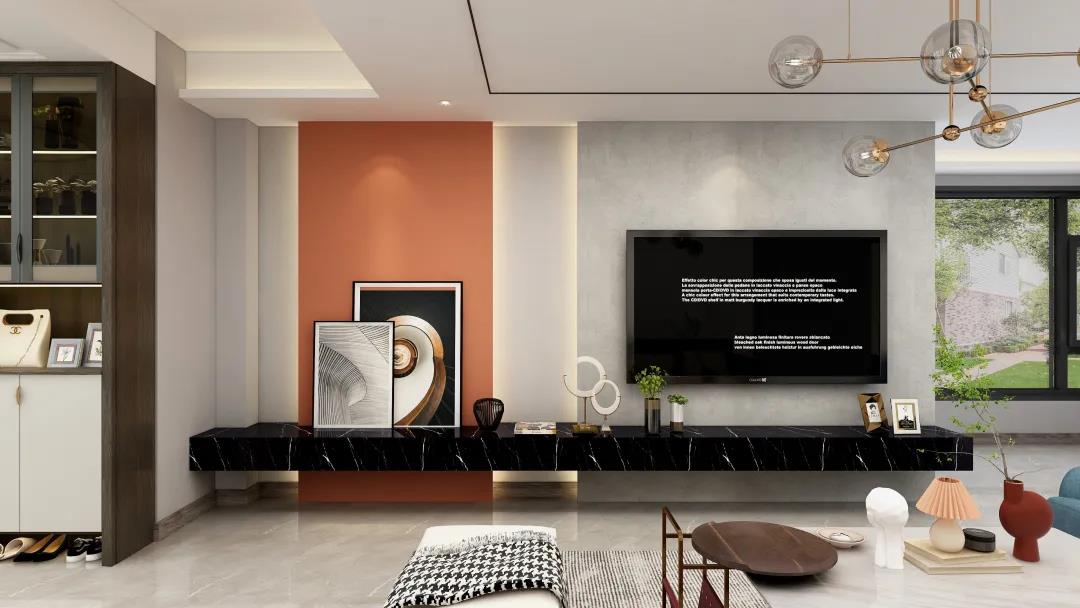 窗外的陽(yáng)光使得客廳空間更加明亮寬敞。電視墻精致的線條設(shè)計(jì),令空間更具層次感。亮眼的愛(ài)馬仕橙,搭配個(gè)性的抽象掛畫(huà)又讓整個(gè)墻面更加豐富?;盍εc沉穩(wěn)融合,給平凡而枯燥的生活增添些許希望與美好。